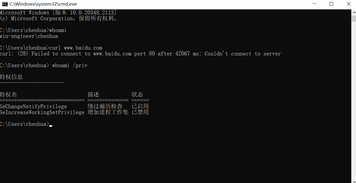 查看权限信息,可以得知seBackipPrivilege权限未开启